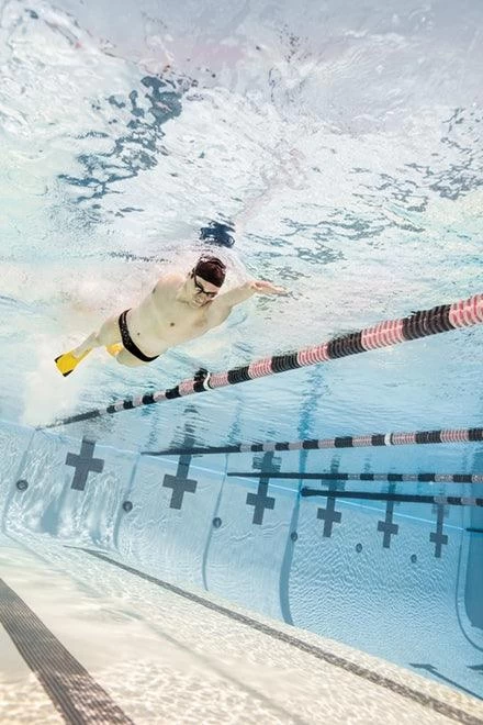 With its short blade, the Z2 Gold Zoomersยฎ fin encourages shorter and faster kicks while experiencing propulsion through the water. The comfortable fit of natural rubber creates a soft and secure fit and inhibits hyperflexion. The fluid separator on top of the fin allows the foot to easily slice through the water while reducing fatigue on the down kick and quads. The flex box on the bottom of the fin helps catch water on the up kick, targeting and strengthening hamstrings and glutes.