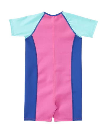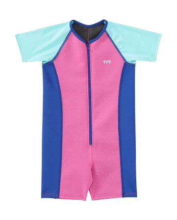 Designed for added warmth, the Girls’ Solid Thermal Suit is perfect for enjoying the ultimate waterside adventure. Neoprene fabric ensures UPF 50+ protection from the sun, as well as peace of mind for TYR parents, while the kid friendly, tugless fit allows for extended comfort. With bright color blocking detail and front zip grip, your young swimmer is sure to feel like a superstar in the KGTSN2Y. 80% Neoprene / 15% Nylon / 5% Spandex 1.5mm Neoprene